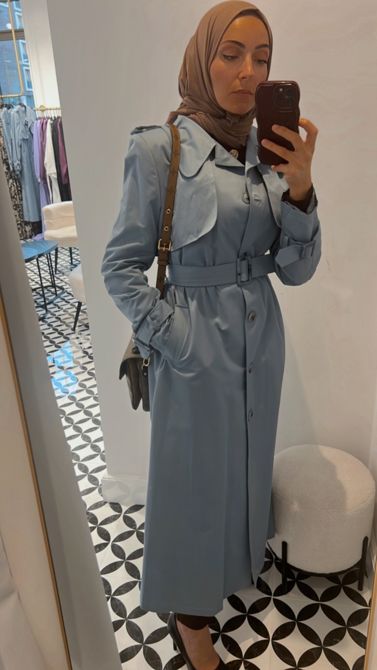 Exclusive lined pastel blue trench coat